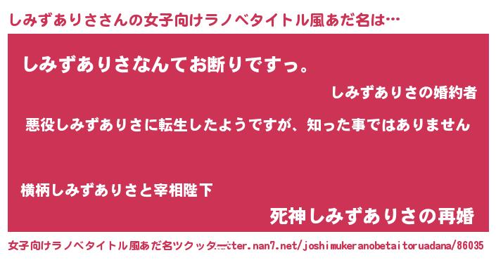 | 男性向けラノベタイトル風あだ名 | 『この素晴らしい世界にしみずありさを!』 |