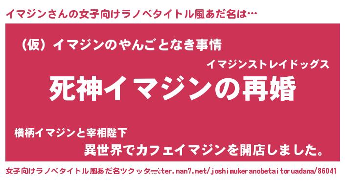 | 男性向けラノベタイトル風あだ名 | 『ノーゲーム・ノーイマジン』 |