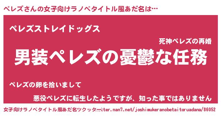 | 男性向けラノベタイトル風あだ名 | 『うちのペレズが世界を掌握している!』 |
