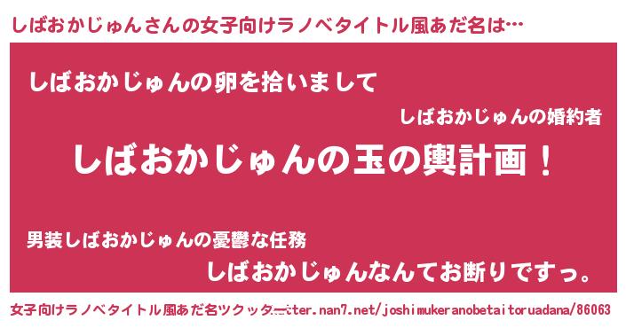 | 男性向けラノベタイトル風あだ名 | 『しばおかじゅん~年齢イコール彼女いない歴の魔法使い~』 |
