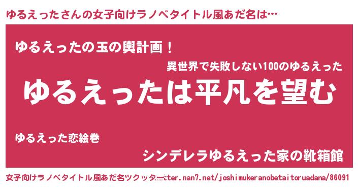 | 男性向けラノベタイトル風あだ名 | 『ダンジョンにゆるえったを求めるのは間違っているだろうか』 |