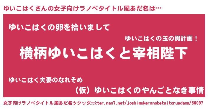 | 男性向けラノベタイトル風あだ名 | 『ゆいこはくに滅ぼされるだけの簡単なお仕事です』 |