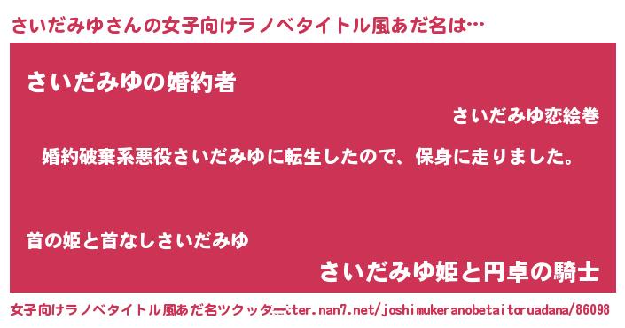 | 肩書あだ名 | 『さいだみゆ上級大将』『さいだみゆ教授』 |