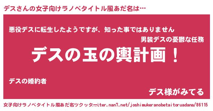 | 胡散臭い通販商品みたいなあだ名 | 『あなたにだけ特別に提供する世界で10本だけ現存している希少なブランデー…その名も「デス」』 |