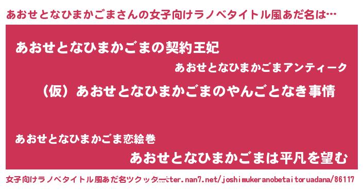 | 胡散臭い通販商品みたいなあだ名 | 『必ず成功する霊験あらたかなお札…その名も「あおせとなひまかごま」』 |