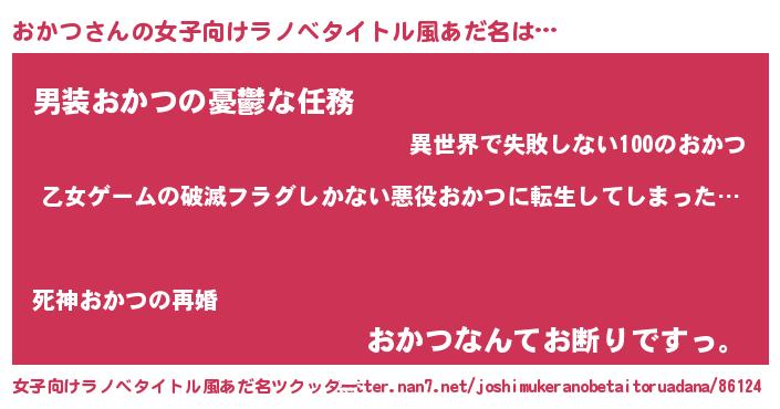 | 意味不明あだ名 | 『住所不定無職おかつ(9歳)』『自称おかつ』 |