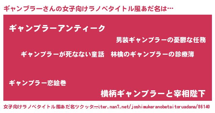 | ヒーロー風カッコイイあだ名 | 『仮面ギャダー』『ネオギャンブラー』 |