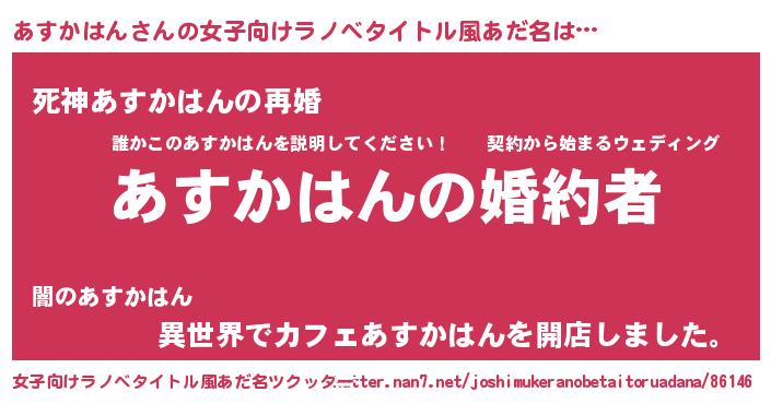 | 胡散臭い通販商品みたいなあだ名 | 『運命の人と巡り会える高級そうな皿…その名も「あすかはん」』 |