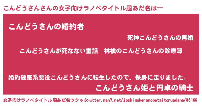 | 意味不明あだ名 | 『住所不定無職こんどうさん(56歳)』 |
