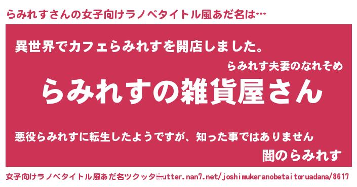 | 男性向けラノベタイトル風あだ名 | 『やはりらみれすの青春ラブコメはまちがっている 』 |