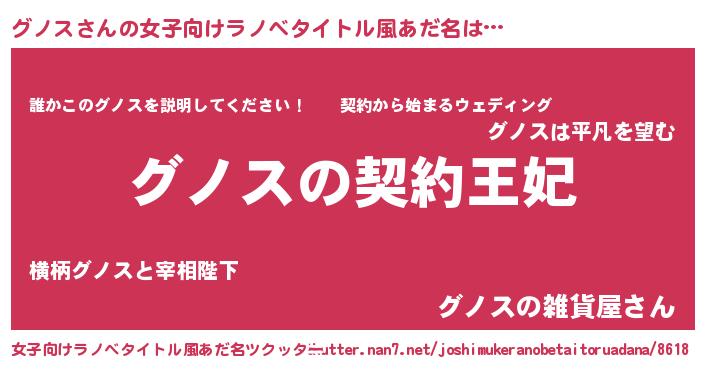 | 胡散臭い通販商品みたいなあだ名 | 『来世でも幸せになれる健康食品…その名も「グノス」』 |