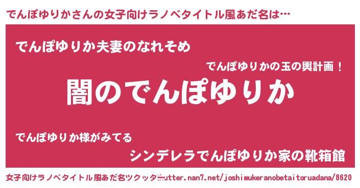 | 男性向けラノベタイトル風あだ名 | 『Re:でんぽゆりかから始める異世界生活』 |
