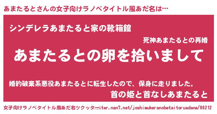 | 胡散臭い通販商品みたいなあだ名 | 『伝統あるサプリメント…その名も「あまたると」』 |