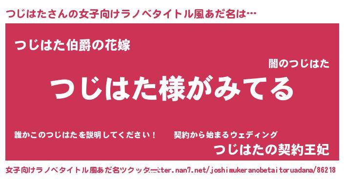 | 男性向けラノベタイトル風あだ名 | 『つじはたの嫁は女の子じゃないと思った?』 |