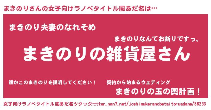 | 男性向けラノベタイトル風あだ名 | 『やはりまきのりの青春ラブコメはまちがっている 』 |