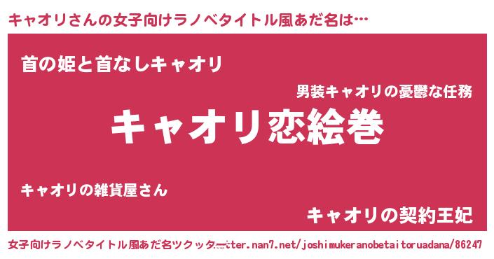 | ヒーロー風カッコイイあだ名 | 『慈愛の使者キャオリ』『ネオキャオリ』 |
