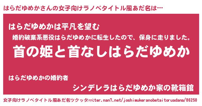| 胡散臭い通販商品みたいなあだ名 | 『信頼と実績のペンダント…その名も「はらだゆめか」』 |
