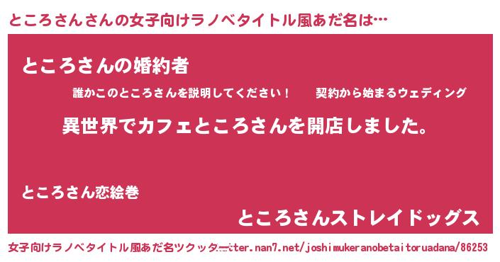| 意味不明あだ名 | 『永久保存ところさん』『自称ところさん』 |