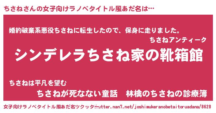 | ヘコむあだ名 | 『ちさぷりん』『ちさね(笑)』『牛乳』 |