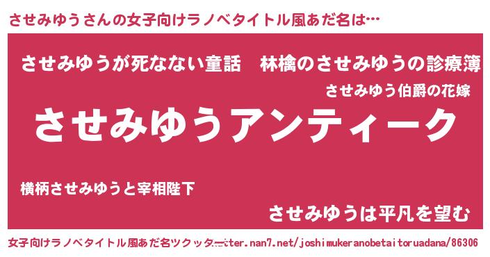 | 男性向けラノベタイトル風あだ名 | 『魔法科高校のさせみゆう』 |