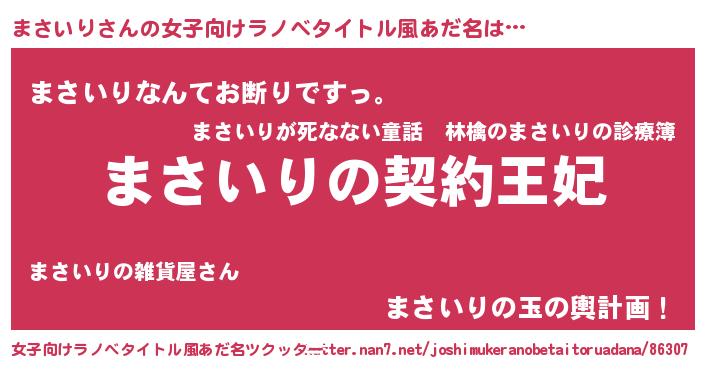 | 男性向けラノベタイトル風あだ名 | 『誰もが恐れるあのまさいりが、ぼくの専属メイドになるようです。』 |