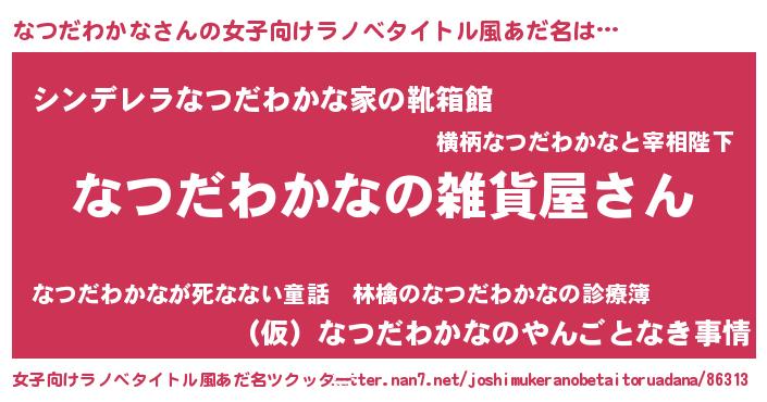 | 男性向けラノベタイトル風あだ名 | 『やはりなつだわかなの青春ラブコメはまちがっている 』 |