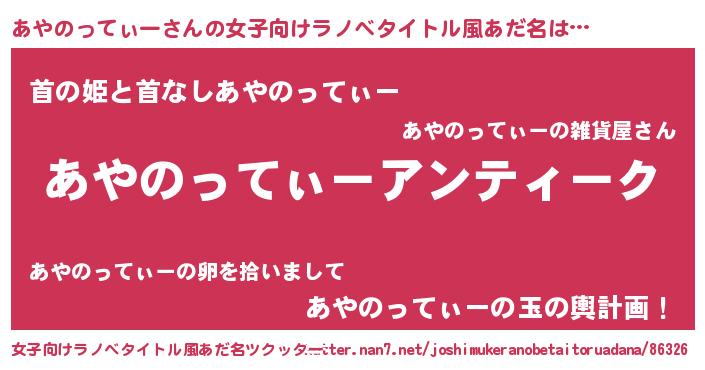 | 男性向けラノベタイトル風あだ名 | 『魔法科高校のあやのってぃー』 |
