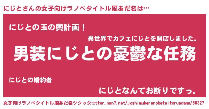 | 男性向けラノベタイトル風あだ名 | 『うちのにじとが世界を掌握している!』 |