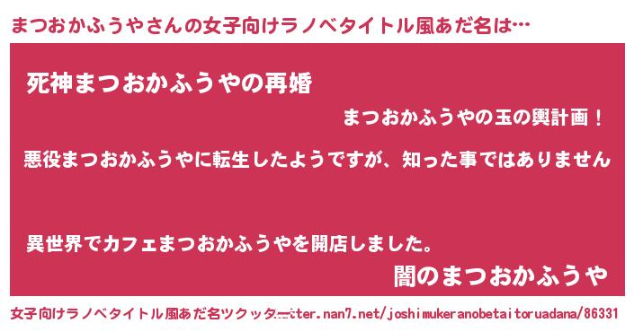 | 意味不明あだ名 | 『住所不定無職まつおかふうや(74歳)』 |