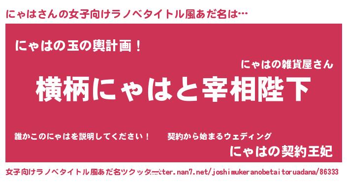 | ヘコむあだ名 | 『にゃは(小並感)』『なまこ酢』 |