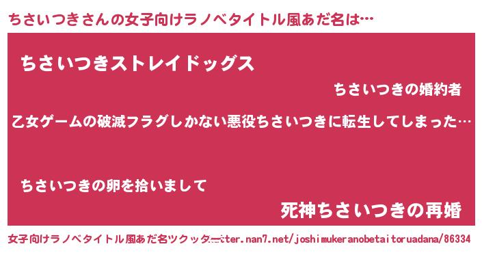 | 意味不明あだ名 | 『住所不定無職ちさいつき(43歳)』 |