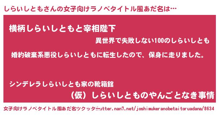 | 胡散臭い通販商品みたいなあだ名 | 『必ず成功する霊験あらたかなお札…その名も「しらいしとも」』 |