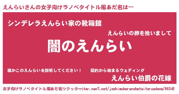 | 男性向けラノベタイトル風あだ名 | 『Re:えんらいから始める異世界生活』 |