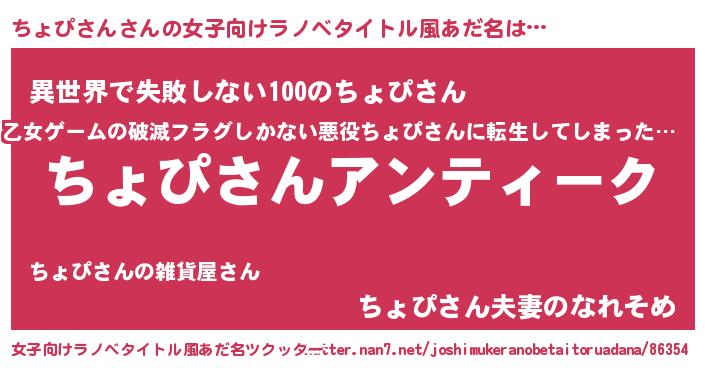 | 意味不明あだ名 | 『自称ちょぴさん』『永久保存ちょぴさん』 |