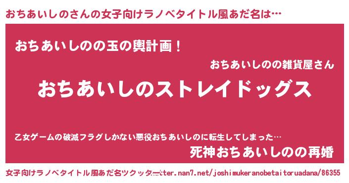 | 男性向けラノベタイトル風あだ名 | 『Re:おちあいしのから始める異世界生活』 |