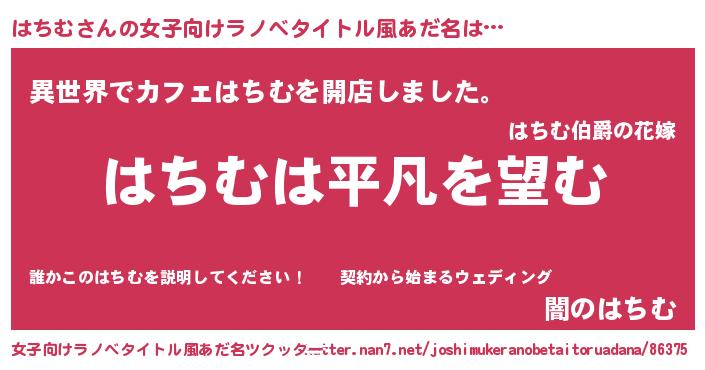 | 男性向けラノベタイトル風あだ名 | 『ダンジョンにはちむを求めるのは間違っているだろうか』 |