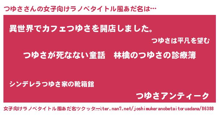 | ファンタジー風あだ名 | 『ヴァルツユーナ』『ツユディッシュ』 |
