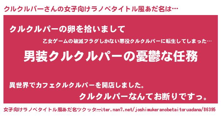| ヘコむあだ名 | 『クルを』『クルクルパー(小並感)』 |