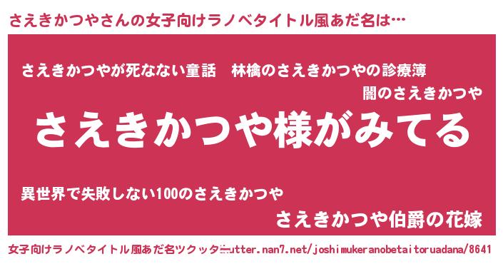 | 男性向けラノベタイトル風あだ名 | 『さえきかつやの嫁は女の子じゃないと思った?』 |