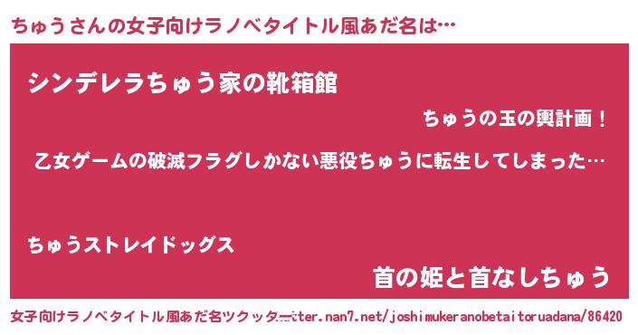 | 胡散臭い通販商品みたいなあだ名 | 『世界中を虜にした世界で10本だけ現存している希少なブランデー…その名も「ちゅう」』 |
