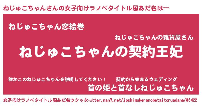 | 胡散臭い通販商品みたいなあだ名 | 『来世でも幸せになれる水素水…その名も「ねじゅこちゃん」』 |