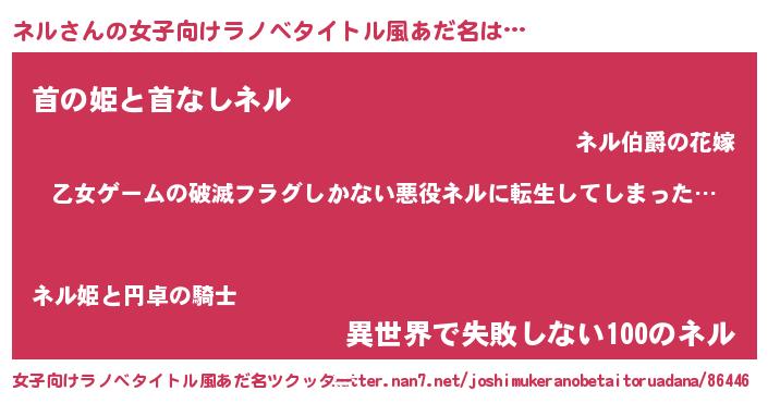 | ファンタジー風あだ名 | 『ヴァルネルーナ』『ネルディッシュ』 |