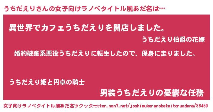 | 男性向けラノベタイトル風あだ名 | 『転生したらうちだえりだった件』 |