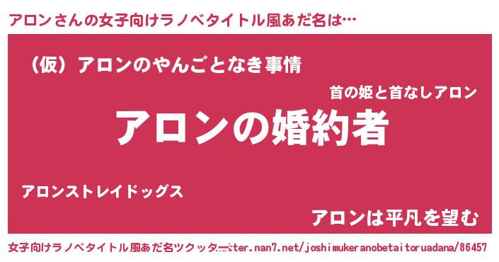 | 男性向けラノベタイトル風あだ名 | 『うちの娘の為ならば、俺はもしかしたらアロンも倒せるかもしれない。』 |