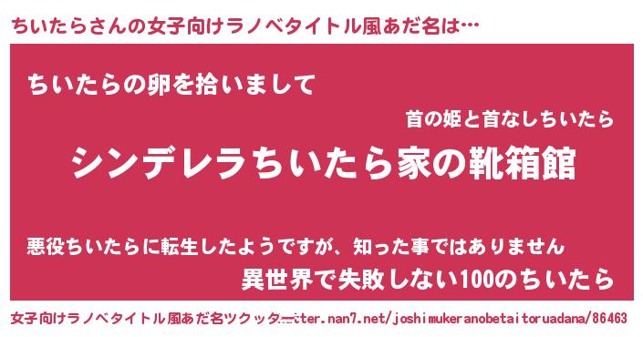 | 胡散臭い通販商品みたいなあだ名 | 『信頼と実績のサプリメント…その名も「ちいたら」』 |