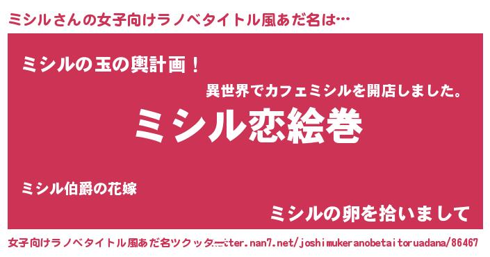 | ヒーロー風カッコイイあだ名 | 『愛の使者ミシル』『天弓騎士ミシ』 |