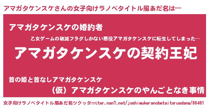 | 男性向けラノベタイトル風あだ名 | 『誰もが恐れるあのアマガタケンスケが、ぼくの専属メイドになるようです。』 |