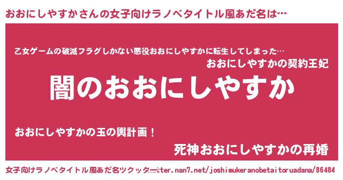 | 男性向けラノベタイトル風あだ名 | 『Re:おおにしやすかから始める異世界生活』 |