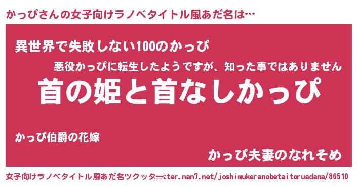 | 男性向けラノベタイトル風あだ名 | 『はたらくかっぴさま!』 |