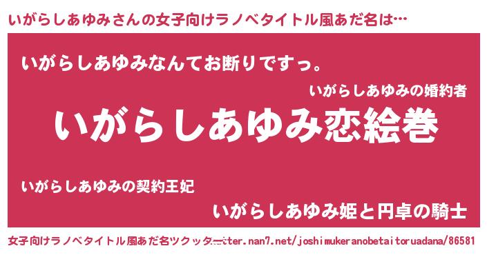 | 胡散臭い通販商品みたいなあだ名 | 『お金では代えられない隕石のかけら…その名も「いがらしあゆみ」』 |